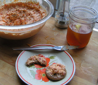 For now you will have to be happy with a pimento cheese recipe. My friend Patrick, who made a delicious batch of pimento cheese at the beach, inspired this batch. Growing up pimento cheese was something that came in a very small jar. At the beach, it was nearly boundless and, served with crackers and vino verde, a great after beach snack. Go to the beach and give it a try.